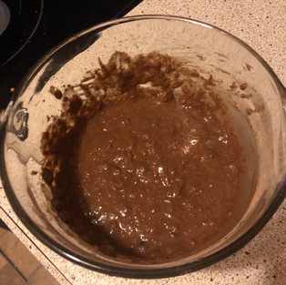 Add the wet mixture into the dry along with the chocolate chips. Mix until incorporated. Do not over mix, or the muffins may come out tough.